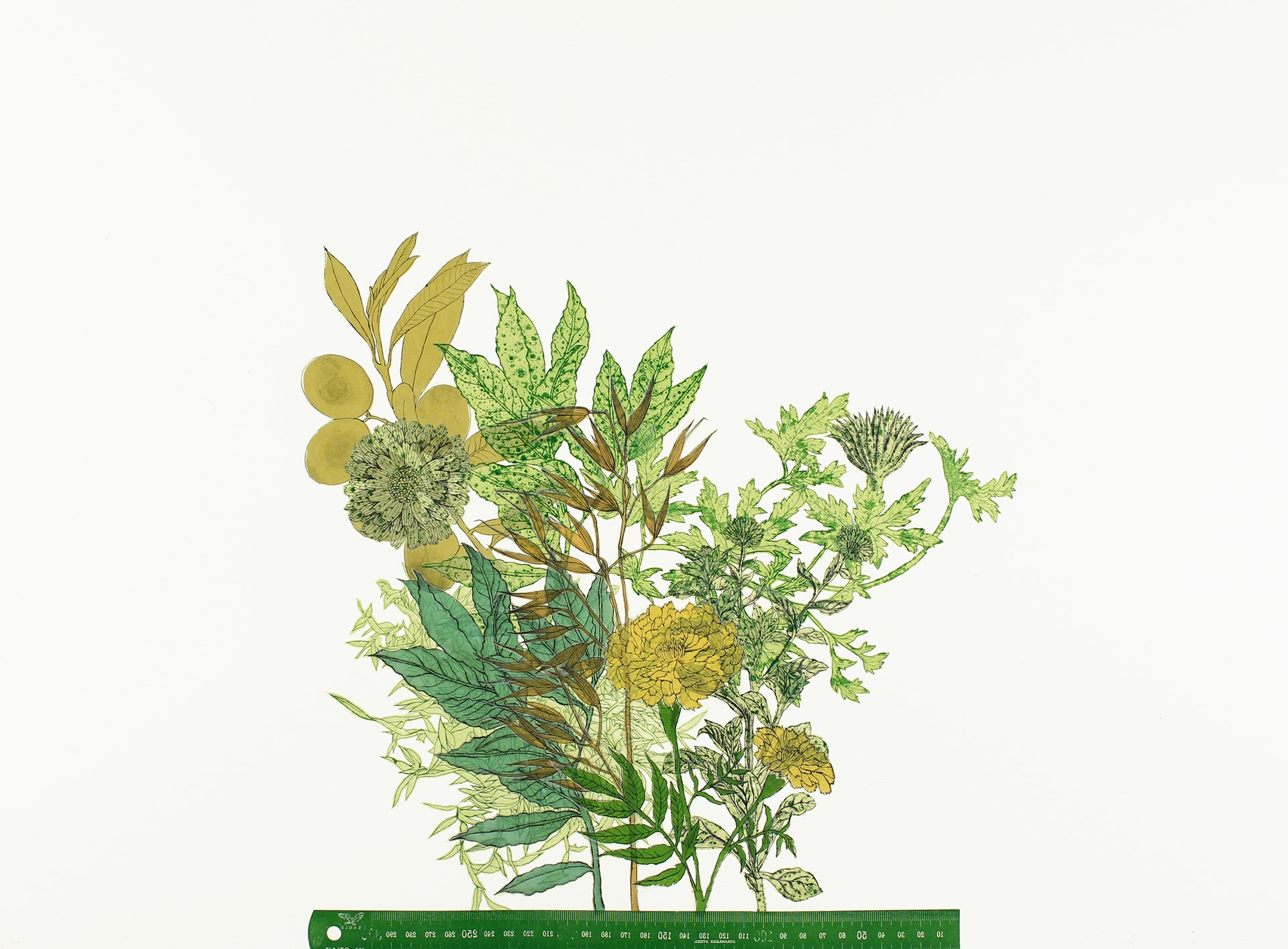 Layered image, a collage work overlapping drawings that were produced one per day over a certain period is an attempt to represent the accumulation of everyday recurrent experience like some ‘indescribable’ abstract character. Each animal and plant image in this work is associated with my personal experience or specific event. For example, in recent work I have repetitively depicted plant roots, zebra patterns, roses, peacocks, bathrobe patterns, and puppies on thin paper in printmaking and drawing. These images serve as my personal metaphor reflecting my momentary thoughts and experiences for one year. As these drawings repetitively overlap, each individual meaning is concealed, and become like abstract dots, lines, and planes, rather than making me feel these are accumulations of work habitually done every day.